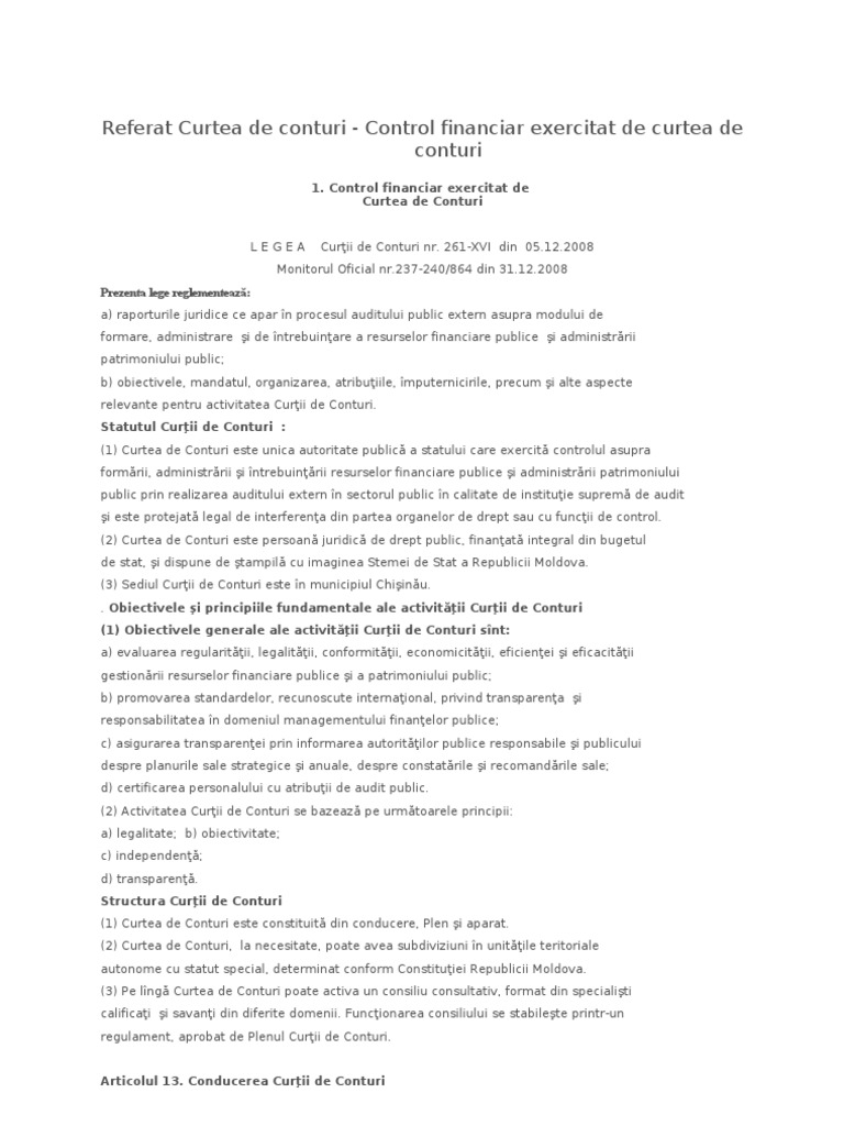 Curtea de conturi curtea de conturi exercită controlul asupra modului de formare, de în lucrarea de față, am reflectat organele principale cu atribuții și răspunderi în domeniul finanțelor din republica moldova, care au rolul de a controla și a evita problemele de ordin economic al țării. 94/1992 în forma iniţială, curtea de conturi era curtea de conturi în noua constituţie a româniei, aplicată din luna octombrie a anului curent (2003), art. Curtea de conturi a fost înfiinţată prin legea din 24 ianuarie 1864, publicată în monitorul oficial nr.18 din 24 ianuarie 1864, sub denumirea de înalta curte de compturi.