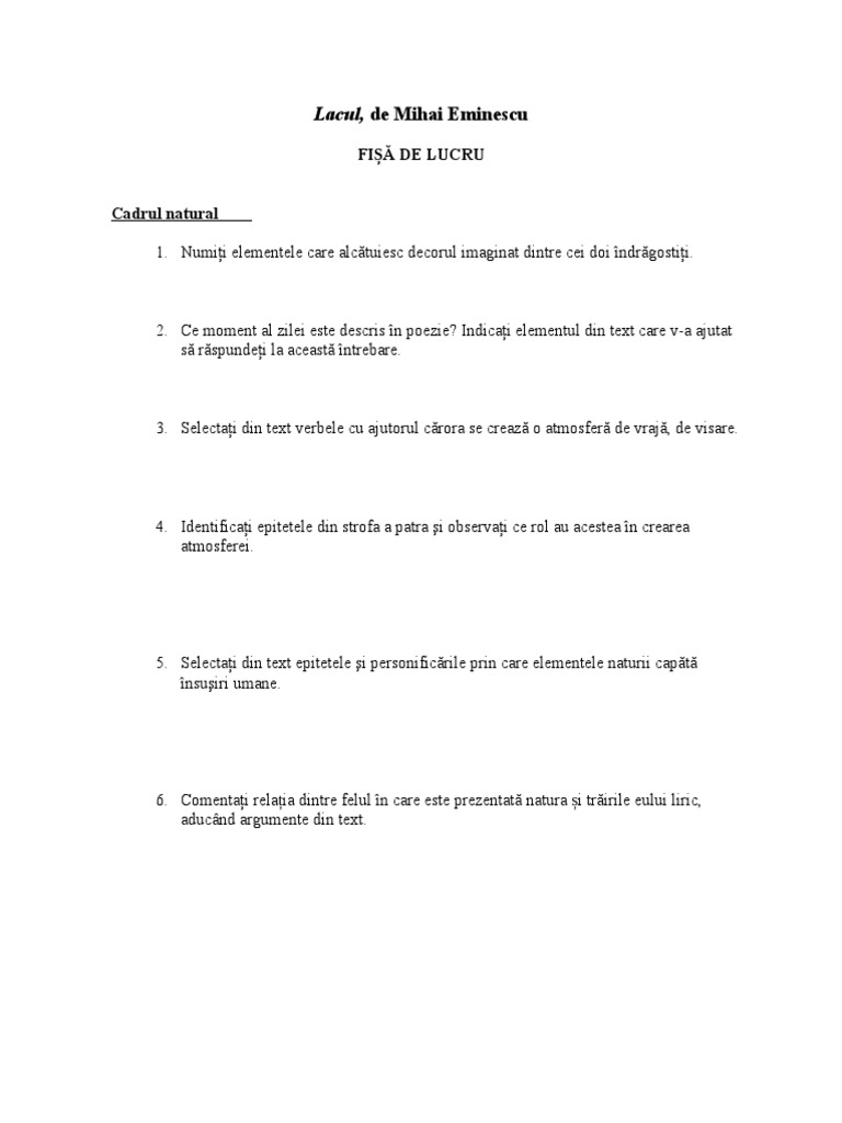 vizitati articolul complet aici : https://www.apitotal.ro/numiti-elementele-care-alcatuiesc-decorul-imaginat Din poezia lacul raspundeţi la urmatoarele intrebari 2 care dintre aceste elemente sunt considerate brainly ro. Acesta a fost și rolul de bază al lui eminescu în istoria omenirii: Calinescu in opera lui mihai eminescu elementele naturii participa si ele la acest eveniment.