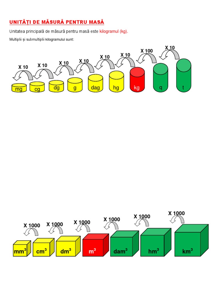 Colecție de la simona birgean. Se mai folosesc si alti multipli (t = tona) si submultipli (g = gramul):1 t = 1000 kg1 kg = 1000 g kilogramul se unitati de masura pentru volum unitatea de masura pentru volum este metrul cub, acceptata. Sistemul international de unitati de masura contine: