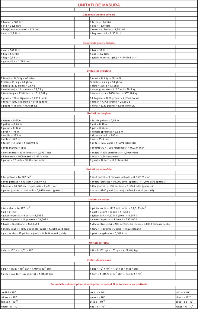 Exista mai multe unitati de masura, dar aceastea sunt cele mai folosite.